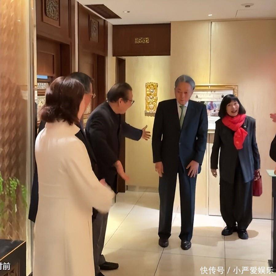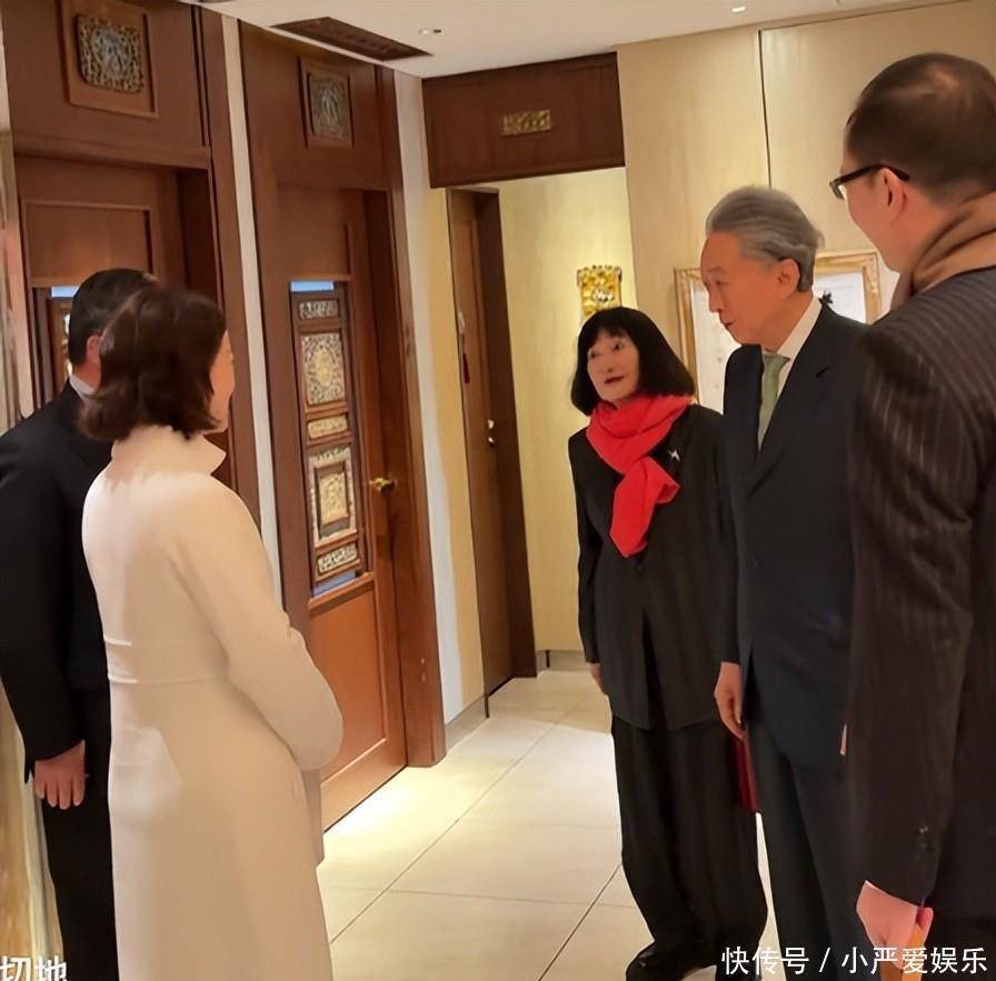 简洁的打扮让她看起来温柔又端庄,身边有朋友陪伴,一行人一起拜访了日本前首相鸠山友纪夫和他的夫人。
