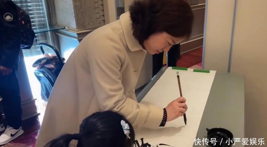 根本看不出她已经是49岁的人了,那天现场她亲自动手挥洒墨汁,写出一手娟秀的毛笔字,引得大家纷纷称赞,娇羞一笑更显温柔。