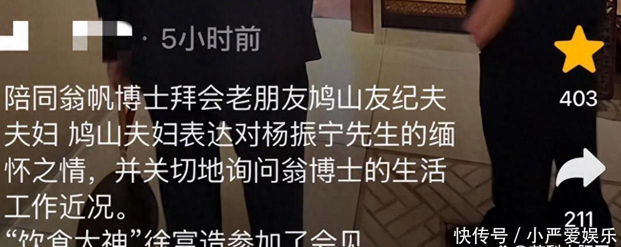 这份得体并非假装出来的,而是从骨子里就养成的习惯。鸠山友纪夫妇一见到翁帆,马上就表达了对杨振宁先生的深切怀念。