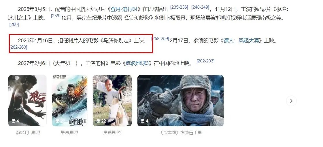 目前,《镖人:风起大漠》已经确定春节档与我们见面,让大家没想到的是,吴京的另一部作品却“低调”上映,这部电影就是《马腾你别走》,在这部电影中,吴京担任“制片人”。